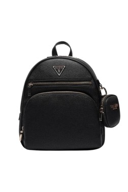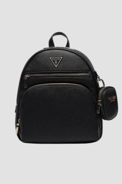 Чорний жіночий рюкзак 'Power Play' від Guess. Рюкзак виготовлений з еко-шкіри та має одне відділення на блискавці. Всередині одна кишеня-слип, дві кишені на блискавці ззовні. Рюкзак має захисні ніжки та мішечок для пилу в заставці.