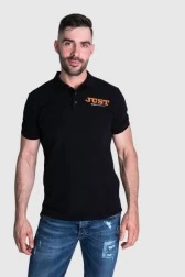 JUST CAVALLI Чоловіча сорочка-поло, чорний золото-срібло з логотипом