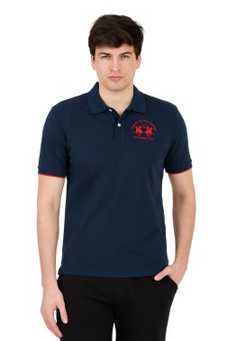 LA MARTINA темно-синє поло з великим червоним логотипом