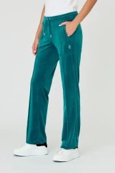 Бірюзові брюки Tina від JUICY COUTURE, виготовлені з високоякісного велюру, не лише забезпечують неймовірний комфорт під час носіння, але й додають вашому гардеробу оригінальності та стилю. Ці незвичайні штани прикрашені стразами, які тонко виблискують спереду і ззаду.
