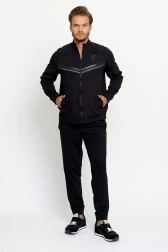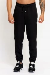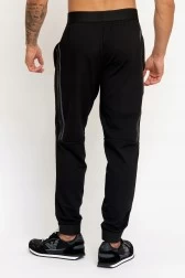 Спортивніштани EA7 EMPORIO ARMANI чорного кольору. Чорна аплікація з логотипом у вигляді гребеня на лівому стегні. Чорно-сірий кант з боків, що сягає колін. Дві врізні кишені з боків. Еластичний пояс з додатковим шнурком. Штанини та пояс на еластичній резинці ззаду.