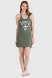 GUESS Зелена сукня з логотипом у вигляді трикутника