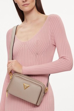 Бежева сумка 'Cosette Camera Crossbody ' від Guess. Усередині ви знайдете безліч практичних кишень: три кишені на блискавці та одну кишеню на блискавці, а передня кишеня на блискавці забезпечить безпеку ваших дрібних речей. До сумки додається регульований ремінець. Мішок для пилу в комплекті.