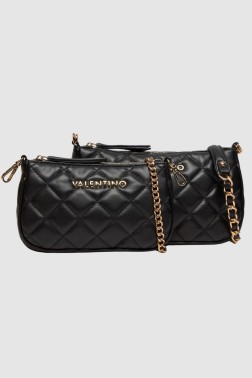 Подвійна чорна сумка Ocarina Crossbody від Valentino by Mario Valentino. Сумка застібається на блискавку. Усередині одна кишеня на блискавці і одна кишеня на застібці, а також невеликий мішечок розміром 12 см заввишки, 19 см завширшки і 4 см завдовжки. Усередині сумки є одна кишеня на блискавці та одна кишеня на застібці, а також два ланцюжки, що кріпляться, один довжиною 119 см, а інший - 59 см. У комплекті мішечок для пилу.