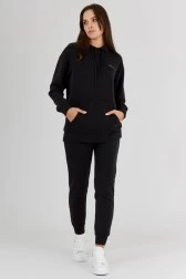 Жіночий світшот GUESS Чорний зі сріблястим логотипом та капюшоном