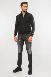 Чоловічий світшот GIVENCHY чорного кольору. Прикрашений кантами з логотипом білого кольору. Застібка-блискавка. Дві кишені на застібках. Низ і рукава з ребристими манжетами.
