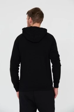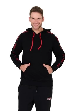 Чорний чоловічий світшот з капюшоном, заправлений через голову з кантами, від Hugo.