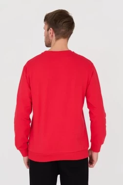 Червоний чоловічий світшот, заправлений через голову, від Moschino.