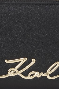 Жіночий шкіряний гаманець K/signature від Karl Lagerfeld. Застібка-блискавка, внутрішня кишеня для монет на блискавці, 2 відділення, 12 слотів для карток і 2 кишеньки.