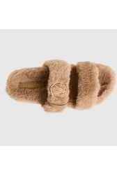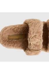 VALENTINO Жіночі шльопанці бежеві шльопанці зі штучного хутра